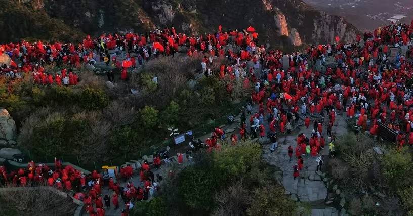 历史上的泰山就有“夜登”传统。明代张岱《岱志》记载,香客为献“头炷香”,“子夜即起,燎火喧腾”,形成“四十里灯火不绝”的壮观景象。