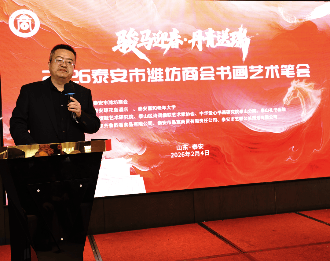 文化润发展 砥砺奋进新征程 此次“骏马迎春·丹青送瑞”迎新春送祝福书画艺术笔会,不仅为泰安市潍坊商会的发展写下了浓墨重彩的文化注脚,更彰显了商会多元发展、协同共进的鲜明特质。作为连接泰安与潍坊的桥梁纽带,商会始终以“服务会员、促进合作、回馈社会”为己任,换届以来,新一届班子既聚焦经济发展,搭建资源共享、优势互补的企业合作平台;也注重文化赋能,通过各类文化活动凝聚人心、传递正能量;更深化区域协同,与兄弟商会携手探索合作新路径,为两地经济文化交流搭建起更广阔的舞台。