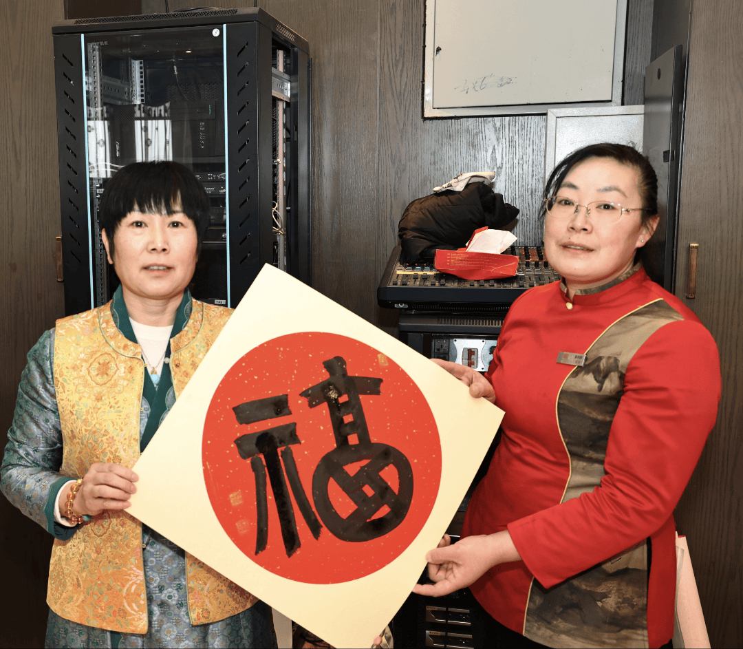 现场墨香浓 妙笔丹青寄深情 上午8时30分,琼花岛酒店2号楼一层大厅已热闹非凡,受邀书画家与参会嘉宾陆续签到,笔墨纸砚等创作工具整齐摆放,空气中弥漫着淡淡的墨香与新春的喜悦。