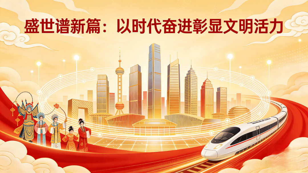 四、盛世谱新篇:以时代奋进彰显文明活力 历经千年沉淀、百年奋斗,曾经积贫积弱的中国早已焕然一新,在新时代的征程上,我们攻坚克难、砥砺前行,书写着举世瞩目的盛世华章,古老的中华文明也在新时代焕发出前所未有的生机与活力,以自信、开放、包容的姿态,走向世界舞台中央,展现着独有的魅力与强大生命力。 科技领域,我们勇攀高峰、敢为人先,实现了从跟跑、并跑到领跑的跨越,用科技实力彰显文明活力。嫦娥系列探测器奔月揽胜,实现千年飞天探月梦想;天问一号着陆火星,留下中国印记;神舟飞船遨游太空,航天员常驻中国空间站,探索宇宙奥秘;蛟龙号、奋斗者号深潜万米海底,解锁深海未知世界;高铁飞驰千里,贯穿祖国山河大地,让天堑变通途,成为中国名片;5G技术领先全球,量子通信实现突破,人工智能、数字经济蓬勃发展,新能源、航空航天、生物医药等领域捷报频传,一个个科技奇迹,让世界见证中国速度与中国智慧。 基建领域,我们匠心筑梦、勇创佳绩,打造出无数震撼世界的大国工程。港珠澳大桥横跨伶仃洋,创下多项世界之最,彰显中国基建实力;青藏铁路翻越世界屋脊,突破生命禁区,创造人类铁路建设奇迹;南水北调、西气东输,惠及亿万百姓,改善民生福祉;一座座现代化都市拔地而起,一条条高速公路、铁路四通八达,古老的中国焕发出现代化的蓬勃生机。 民生领域,我们不忘初心、牢记使命,践行以人民为中心的发展理念,让百姓共享发展成果。脱贫攻坚战取得全面胜利,近亿农村贫困人口全部脱贫,彻底消除绝对贫困,实现了中华民族千年以来的小康梦想,书写了人类减贫史上的奇迹;全面建成小康社会,人民生活水平大幅提升,衣食住行日新月异,教育、医疗、养老等民生保障体系不断完善,百姓的幸福感、获得感、安全感持续增强,安居乐业、国泰民安的盛世图景,正在中华大地徐徐展开。 文化领域,中华文明自信绽放、走向世界,文化自信深入人心。孔子学院、中华文化中心遍布全球,让世界感受中华文化的博大精深;国风国潮蓬勃兴起,传统服饰、古典诗词、非遗技艺深受年轻人喜爱,古老文化焕发青春活力;北京冬奥会、杭州亚运会开幕式,以中式浪漫惊艳世界,向全球展现中华文明的包容与博大;国风音乐、古装影视、非遗文创走出国门,收获无数海外粉丝,中华文明的影响力与日俱增,赢得世界的尊重与